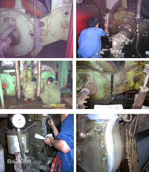 2、由于烘缸為飽和蒸汽加熱,蒸汽溫度為120℃-130℃。金屬機架在密閉汽罩內自吸熱可達150℃,熱脹冷縮讓個(gè)別部位配合位置間隙過(guò)大(如烘缸與齒輪箱結合點(diǎn)),形成滲漏;